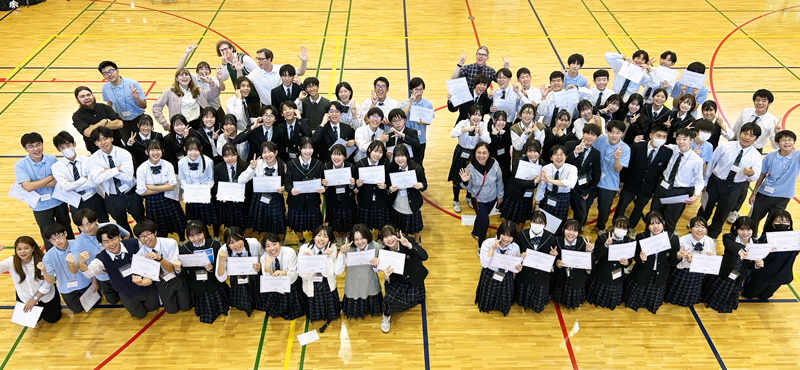 時には和気あいあいとなごやかに、時には熱く議論を交わした講師と生徒たち。ランチタイムも一緒に過ごし、交流を深めました。あっという間の2日間の活動でしたが、クロージングセレモニー終了後、どのグループも先生を囲んで別れを惜しんでいました。2日間で大きく成長された生徒さんの様子に、実施した学校の先生方にも大変ご満足いただき、来年度の再会を約束して終了いたしました。