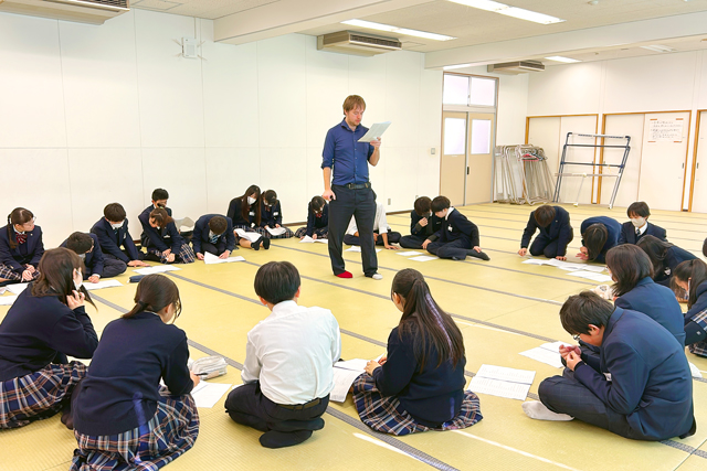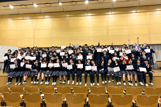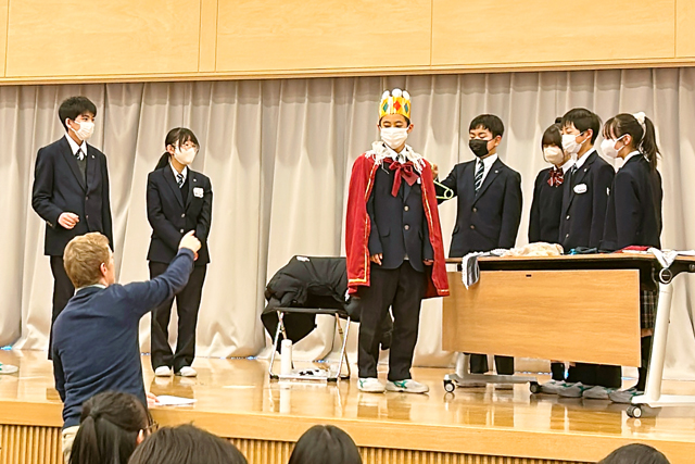 12月に実施した群馬県高崎市の中高一貫校中等部での2日間ワークショップでは、1学年全員にご参加いただき英語劇の発表を行いました。立った2日間で英語劇を仕上げてステージ発表するという非常に限られた時間の中で、生徒の皆さんが意欲的に取り組んでくれました。