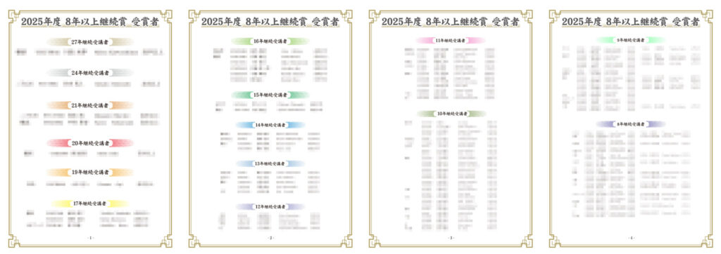 この度、2025年度の「8年以上継続賞受賞者のリスト」を、MLS会員ページにて公開いたしました。ぜひご確認ください。皆さま、本当におめでとうございます & ありがとうございます!!