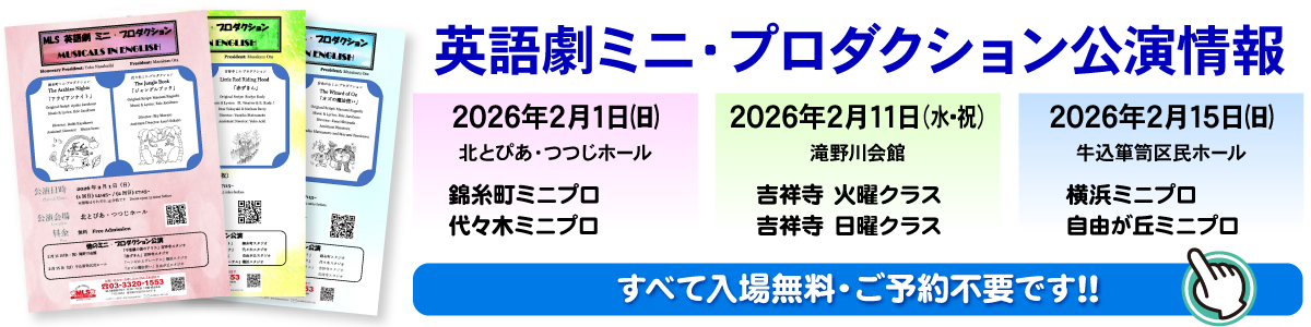 MLS の英語劇は、発表ももちろん大切ですが、メインはリハーサルや本番を通して英会話力をアップさせることですので、英会話の習得にとても効果があります。