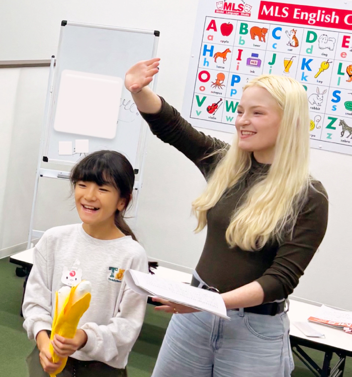 公園にいる外国の方々に話しかけるようになりました。小学校の授業は、MLSですでに習っていることが多いので、授業が積極的に行えるようです。外国人の先生の癖などを良くまねていて、リアクションの取り方など、自然に体に入っていく様子を見ていて楽しいです。 英語劇については、台詞を覚えているので、単語を変えると日常の会話におとしやすく、日々の生活と会話を合わせやすいです。本人は、お友達と協力できて嬉しかったようです。 英語での苦手意識もなく、楽しくゲームや会話に取り組んでいて、良かったです。劇のセリフも応用しやすくとても役立ちます。